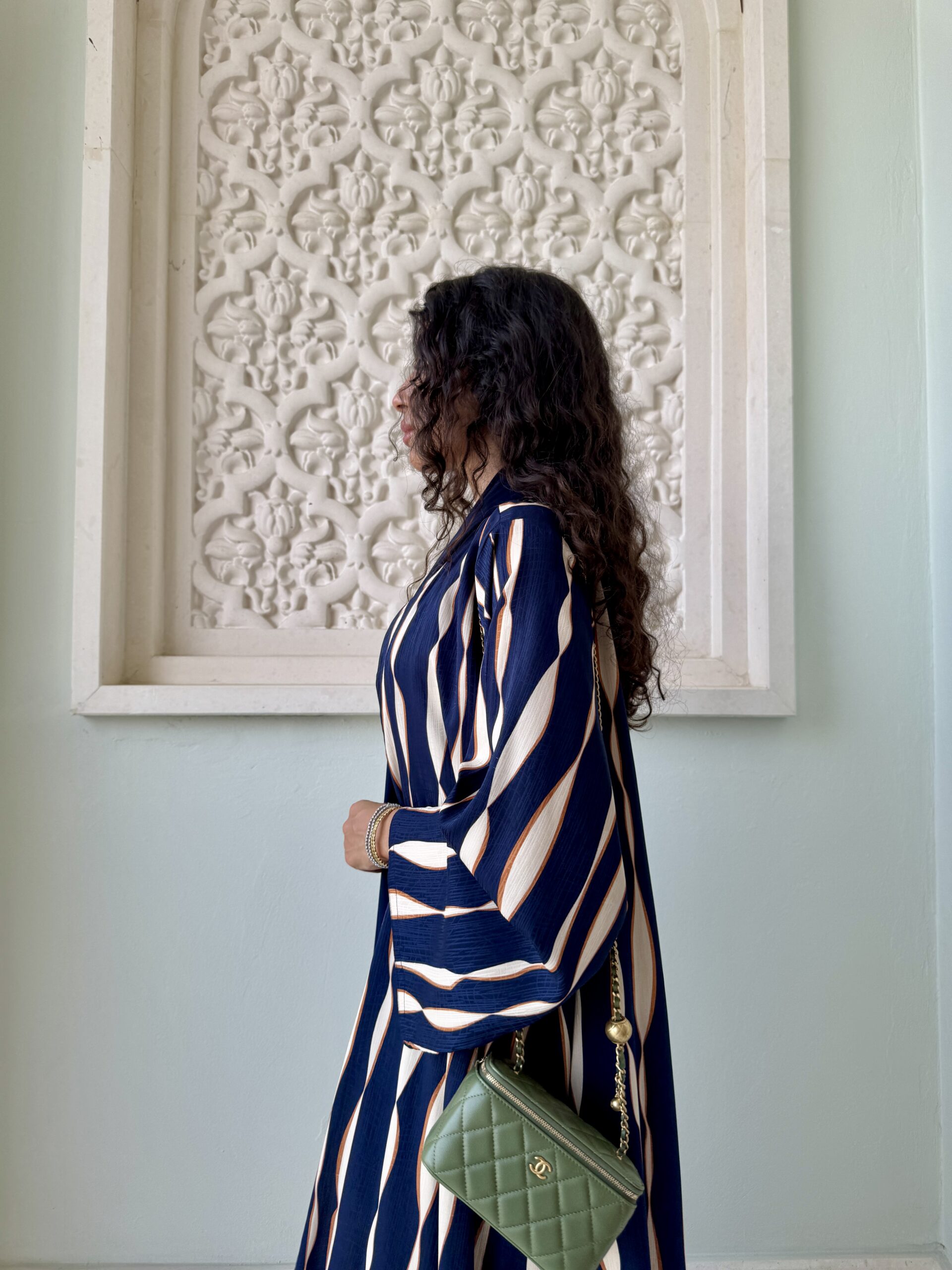 Detail: Elegance meets simplicity with this timeless silk abaya. Designed with delicate piping along the sleeves and hemline, it features subtle pleats that add graceful movement to every step.